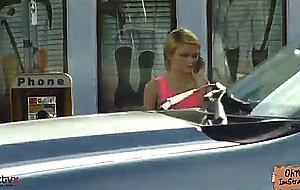キュートなティーンのダコタが立ち往生して、車を必要としています。