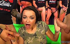 5:02Ukrainian brunette babe daphne klyde gets cumshota with facials and bukkakes and she gives oral blowjobs on horny german dicks