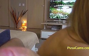 Hot and beautiful blonde with a true beauty giving best handjob and best blowjob ever seen. A pov view on her sucking and jerking of that big dick and being so passionate naughty teen with cum in mouth!