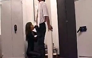 若い強盗犯の美女が金庫室の中で老人をフェラチオし、ファックする。
