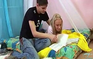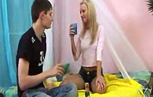 小さなブロンドのティーンが太いチンコで満たされる