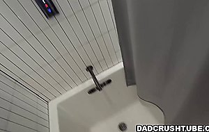 Stepsisters Maya Farrell and Sarah Lace confront their stepdad Filthy Rich while he's taking a bath, demanding to know who’s his favorite stepdaughter. The two notice his huge boner and started to compete who will pleasure him more.