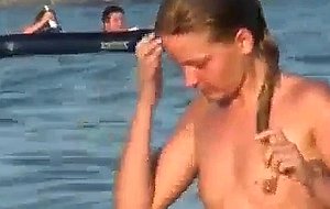 ヌーディストビーチでは、2人のゴージャスな裸のティーンエイジャーが登場します。