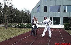Jayla De Angelis trips down to lingerie and sucks the studs big cocks Her natural tits jiggle as he fucks her In a heavy double penetration she takes Kais cock in her cunt as Maximo rams her rectum She opens her mouth for a cum facial