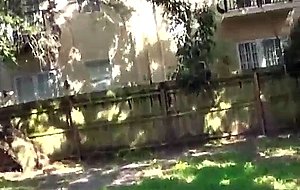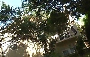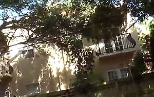可愛い大学時代の元彼女が屋外のデッキでチンポをしゃぶる