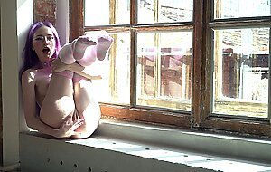 Beautiful teenager with dark-skinned tomentum rubs and fingers her pussy .