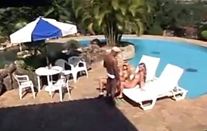 プールサイドで黒チンコがティーンエイジャーのオマンコをパコパコ
