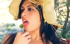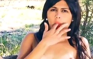 毛深いオマンコのティーンが屋外でオナニー