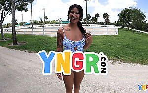 YNGR - Chicago Teen Ameena Green Sucks Cock In Public Before Oiling Up And Fucking Hard HD