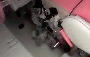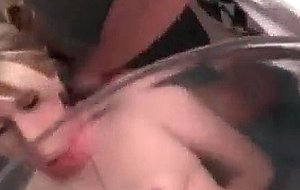 変態ティーンの金髪娘がホースで小便を飲むシーン