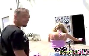 This young blonde teeny bopper rides this stud's cock in cow girl style