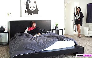 Mature MILF India Summer walks into her stepson masturbating When she talks with him she gets to know about his insecurity with his penis size To cheer him up she sucks his boner and when his girlfriend Alli Rae joins them they enjoy hot threesome sex raw