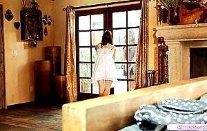 Petite brunette kisses her new latina college friend during homework.They take a shower together and continue kissing.The latin babe gets her firm titties sucks and gets her first oral.Then she licks for the first time and likes the taste of pussy