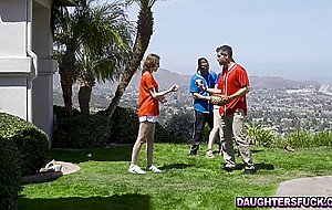 Jake Vegas and stepdaughter Jane Rogers are intimately close, and they are discovered by Mike Mancini and stepdaughter Tristan Summers, while on break playing baseball. Jake and Jane are making out in the kitchen while Tristan and Mike got caught up in the moment too.
