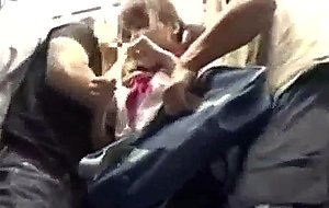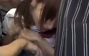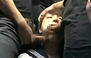 Shy schoolgirl gangbanged in a public train