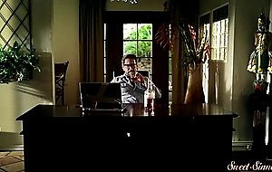 Throatfucked stepdaughter squirted with cum