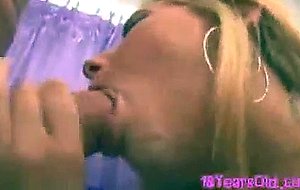 Ashley Jensen sucks some dick then rides reverse cowgirl
