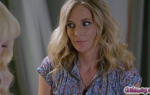 Kendra stays at Kenzies place. Later that night, Kendra hears a moaning sound. As she peeks she saw Kenzie eating out Mona. She watches them while she masturbates. But when Kendra lets out loud moan, she gets caught. Kenzie invites her for a threesome to take the edge off for everyone