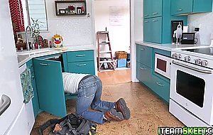 6:51Pigtailed sex pixie Jenna Ross has been having trouble with the kitchen sink so she calls up a hung repairman to help her out She seduces him in the middle of the kitchen yanking his dick out of his pants and slobbering on it