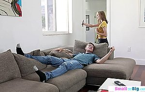5:41A petite teen flirts with her stepbros friend.She grabbed his phone and took a naked photo of her.Then she drops on her knees and begs for his big cock.She sucks on his cock and afterwards lets him fuck her tight teen pussy before her stepbro arrives