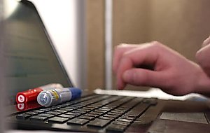 Black hold-up stockings, garterbelt and no panties this blonde teeny is dressed to seduce and arouse, and the guy she came to visit just can't keep concentrating on work with her around. She is his sexual muse, his erotic inspiration, his breath of fresh air and his door to a whole new world of pleasure. He fucks her tight slurping pussy real good and fills her mouth with hot cum, somehow not even messing up her perfectly pretty makeup.