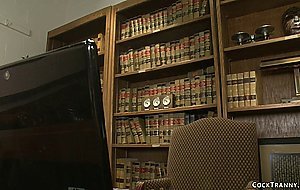 Big cock blonde TS dean Nina Lawless dominates webcam student a brunette hottie Kassondra Raine and fucks her mouth and pussy in the office