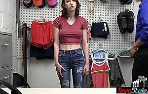 Super skinny brunette teen shoplifter Tristan Summers with big natural boobs strip searched and punish fucked by a dirty security guard on CCTV after the interrogation He banged her pretty face then the big cocked dude dived into her shaved pussy