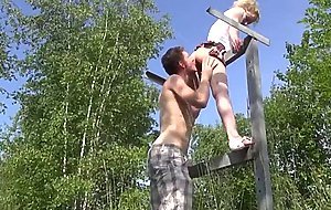 Dünne Amateur Teen wird im Freien von einem Fremden gefickt