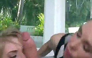 Milf and teen suck and ride cock in threesome
