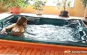 A girl is swimming in an indoor pool, wearing a bikini. Behind her a guy is mopping the floor. A little later she is naked and standing on one leg while the guy is fucking her from behind. Then she sucks his hard dick until he comes all over her face.