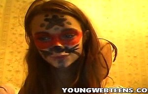 Dodaj "Teen with face makeup fingering her wet pussy on webcam" do twojej playlisty.