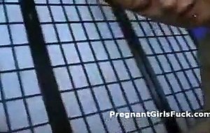 Pregnant teen sucks black cock on her knees and mounts it