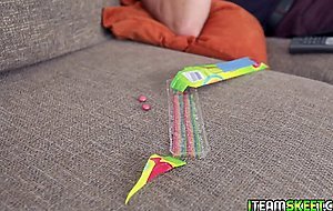 7:11The catches Athena May eating sweets he is pissed The only way he will keep it a secret from her parents is if she sucks on his lollipop She agrees and he shoves his long cock between her lips Athena gags as she makes stunning eye contact