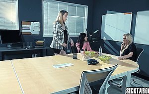 Perverted big ass boss Joanna Angel used hot blonde assistant Aliya Brynn and licked her nice pussy in the office in front of perverted lesbian colleague Tattooed MILF needs teens pussy She seduced her and licked her Horny MILF rode babes face