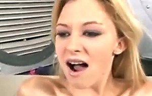 Cute blonde teen swallows several loads