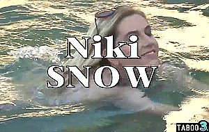 5:20Skinny blonde teen stepdaughter Niki Snow with small tits and pierced nipples doesnt want to lose her BBC stepdaddy so she kissing him and after a deepthroat blowjob she lets him to interracial fuck her outdoor to prove she loves him