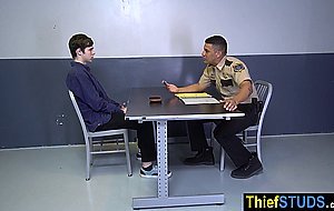 6:16Scared teen perp Dakota Lovell interrogated by a dirty latin LP officer Leo Silva who ordered him to suck his big dark cock then he anal fucked the shy skinny thief bareback during he stroked his big dick