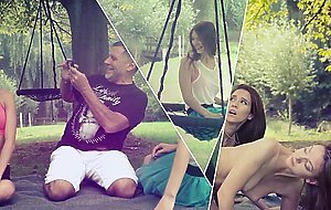 Skinny teens ride grandpa cock so hard get fucked and take facial HD