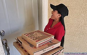 Two horny teens Jay Romero and Rion King ordered some pizza and fucked this sexy asian delivery girl name Ember Snow.