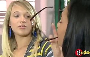 29sTeagan and Isabella are college roomies. Teagan is a blonde, and Isabella is a tan Latina. Together, they make a perfect combo for a hot lezzie lickfest. Isabella has never had a sexual experience with another girl, but Teagan is more than happy to break her lezzie cherry. The two start kissing passionately and make their way down to one another's tiny boobs. They suck and tease nipples--and eventually one another's clits. "Girls are more sensual," says Teagan. Amen to that! Both girls cum up a storm--first from the hot oral they give each other, and then from sexy dildo action!