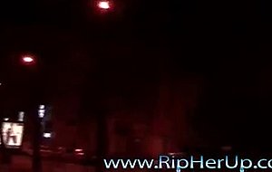 Sexy redhead on jeans gets clothes ripped for fast sex
