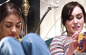 Two college friends grow really fond of each other.The brunette makes her move and the lesbians start kissing.She sucks her gfs perky boobs and dives between her legs to get her oral.She spreads and gets her pussy licked by her small tits girlfriend