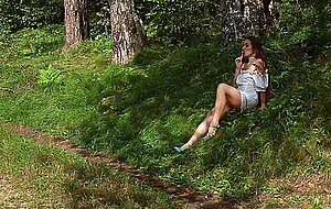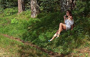 5:48Sexy little girl Nora is strolling in the forest with a ice lolly in her back talk. lip she decides to use the ice lolly to have have fun on the grass .