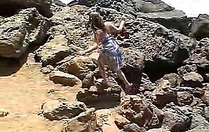 Hot teen fingers herself in outdoor scene