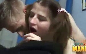Do not let the innocent looks of Kayla fool you, this perky tit bald pussy teen really likes sucking cock and loves getting that wet spot fucked. Once the action starts here the fucking is hard and fast. Kayla gets into it too she grabs the blanket and his back and hold on until he shoots his load of jizz.
