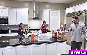 Coach Bobby is startled to find not only himself but the three babes Avery Black Coco Lovelock and Diana Grace naked and on top of him He ends up giving in to temptation and rewards them for being such good teammates and fucks them together