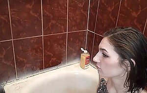 Hot teen brunette get facial after POV blowjob and hard pounding in bathroom on amateur webcam show live at sexycamx.com