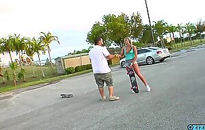 Blonde skater girl strips off her clothes and gets fucked hard HD