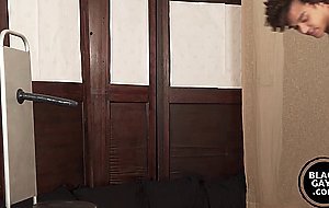 5:19Black twink Derek Cline opens his mouth to suck a long black dildo He switches it with hunk Eric Fords big black cock and takes both rods in his mouth Then he sits on Erics thick cock getting his virgin asshole fucked raw and bounces up and down hardcore