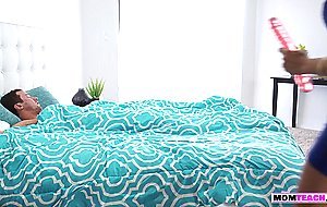 4:54Teen stepdaughter Mila Jade is upset and tells her stepmom Ariella Ferrera that she cant satisy her boyfriend MILF mom is relieved to know that and shows her how to please a man The ladies then go to him and suck his cock then ride his stiff rod hardcore